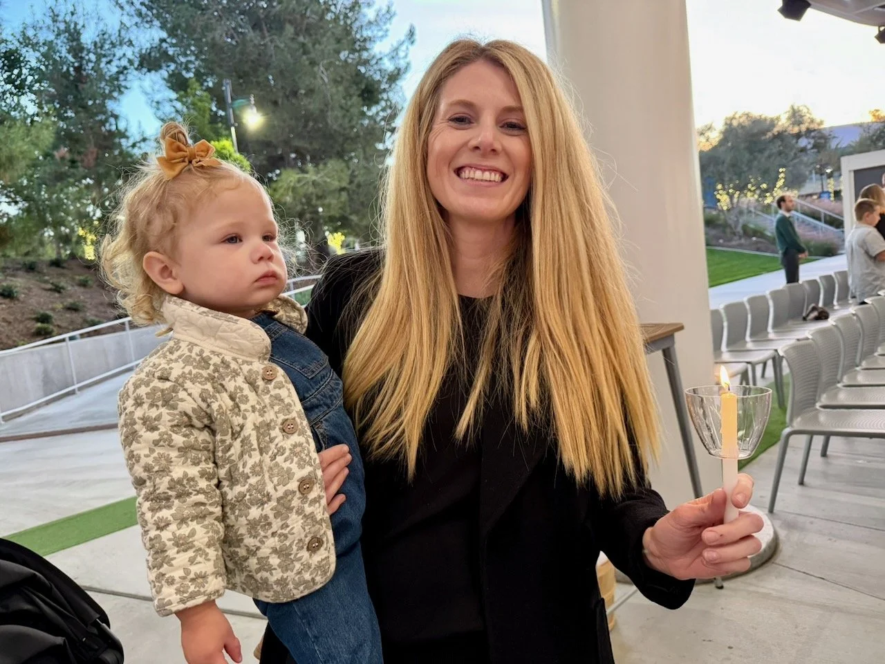 The following week or two was all in anticipation of Christmas. Elle was saying “Santa” and “ho ho ho” as often as possible, and we were introducing her to some Christmas movies. And to honor my heritage, we purchased a new menorah (we might have lost our old one in the move) and celebrated every night of Hanukkah, even one night with Jake.
