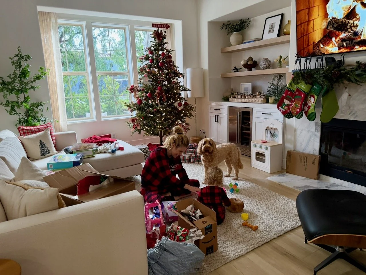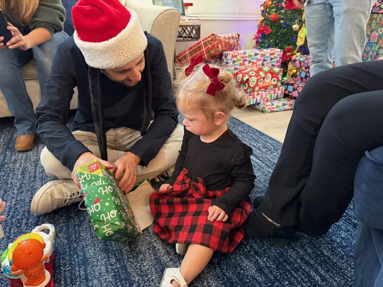 Christmas morning was equal parts beautiful and exhausting. Elle woke up, and we came downstairs and opened her main gift from Santa (nicely placed in a giant red bag with her name on it), along with the stockings, before breakfast. After breakfast, it was mostly chaos between Elle and Frasier, ripping open gifts and not interested in any more once they got their respective toys. We soldiered through and promised to do fewer gifts next year (I hope we heed that advice). By the time they both opened gifts, it was time for Elle’s nap, so we put her down and opened up our gifts to each other. It was nice to have that quiet time and to enjoy exchanging gifts while Elle slept.
