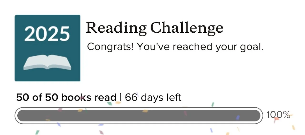 Goal #1: Read 50 Books: I’ve read 50 books and hit my goal!!!