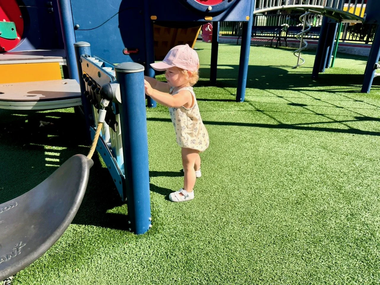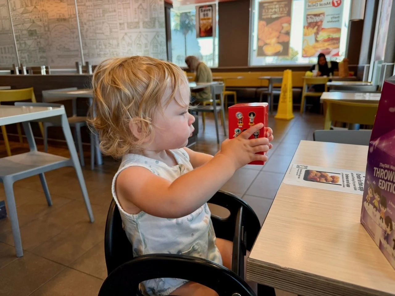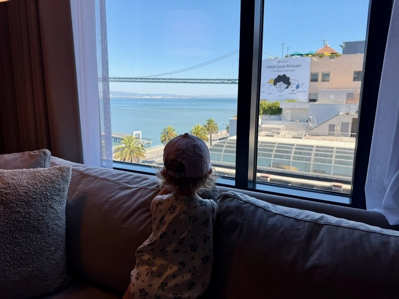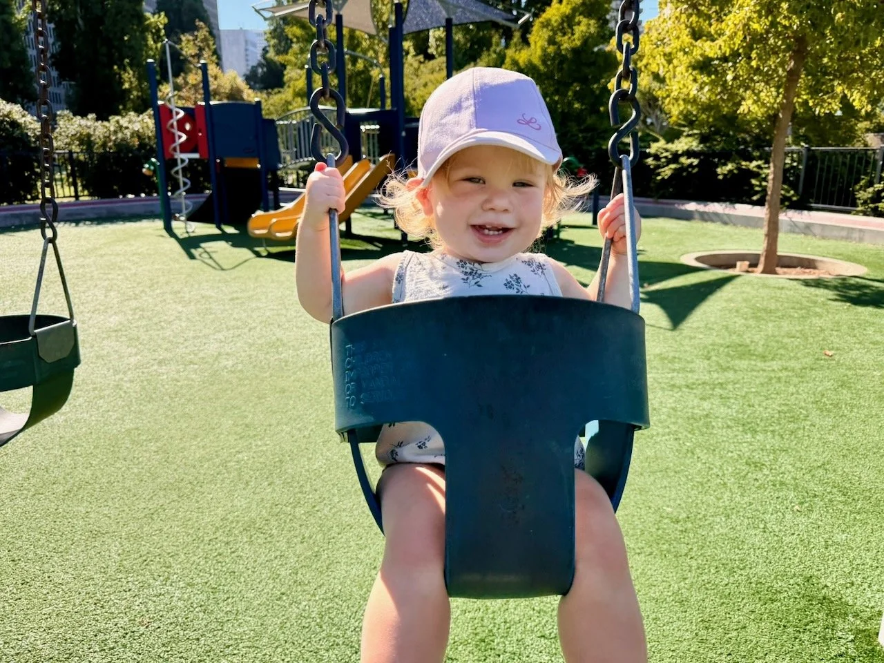 A few days later, Jenn flew up to San Francisco for a week of meetings. Originally, Elle and I were going to drive up with her on the 21st, but with some schedule changes on Jenn’s end, we drove up on the 23rd. We know our opportunities to join Jenn on her work trips are coming to an end, and so we wanted to make sure we were able to spend the time with her. After having lunch at Islands Restaurant, we dropped Jenn off on Sunday evening at John Wayne Airport, and I had a few days with just Elle and Frasier. On September 23rd, I packed up the Volvo with Frasier and Elle and dropped Frasier off at Wags and Wiggles before driving us up to San Francisco. The drive up wasn’t bad. Elle got bored a few times, but I brought a ton of books for her to peruse while we made the drive up. We stopped at McDonald’s, where she got a Happy Meal and a toy that she loved. Ironically, she didn’t like listening to my audiobook (like her mother), so I had one headphone in for most of the drive. We arrived at the 1 Hotel in San Francisco at 2:30 PM, got our room key, let Elle stretch her legs, and went out to the nearby park that she loved a month ago.