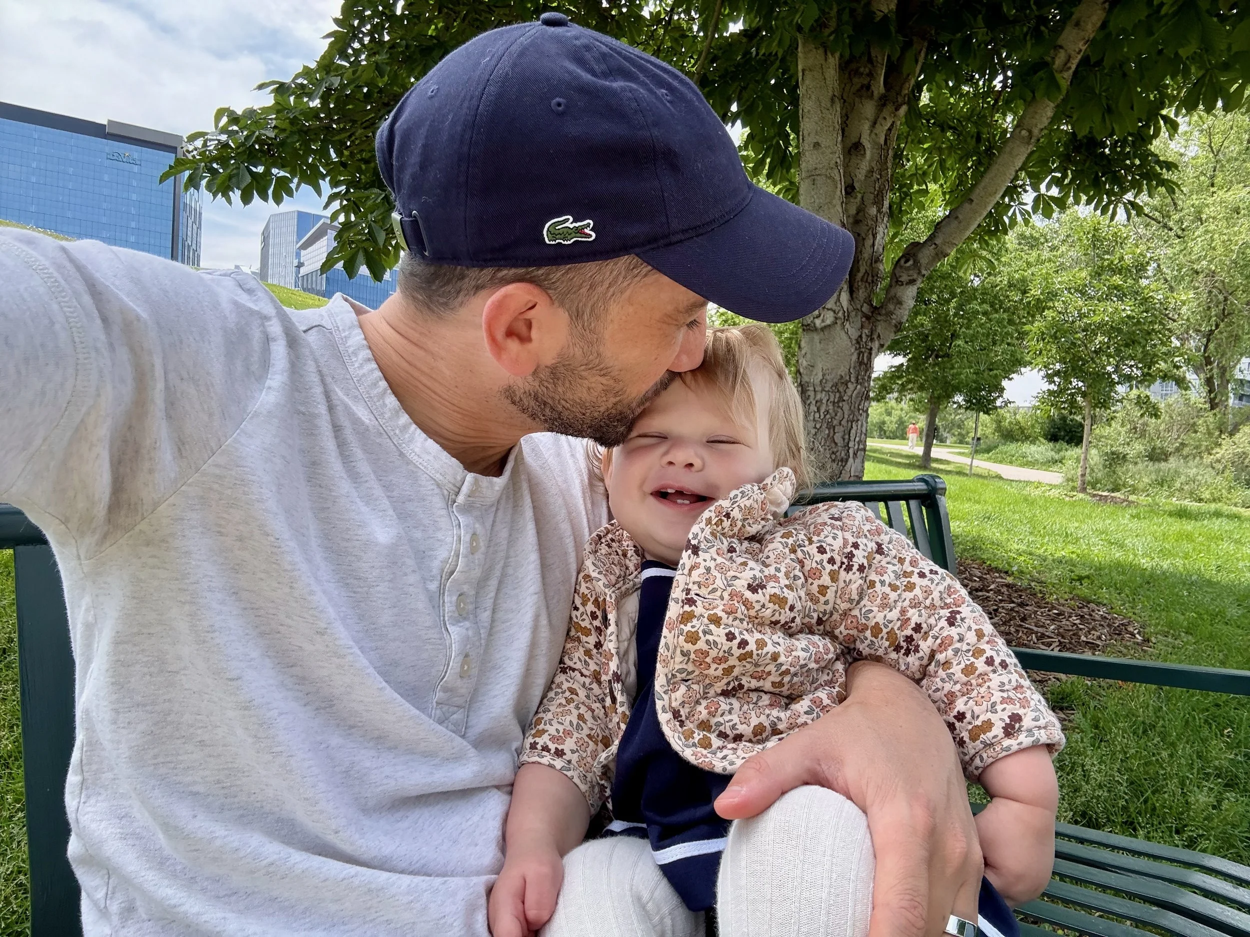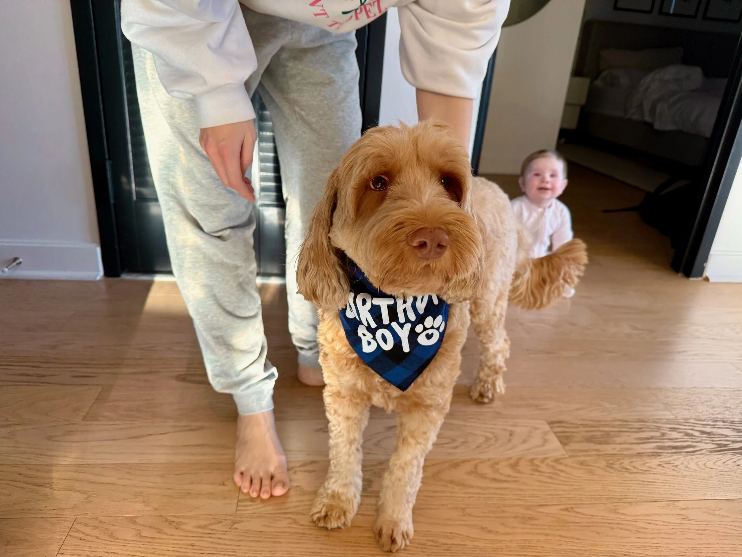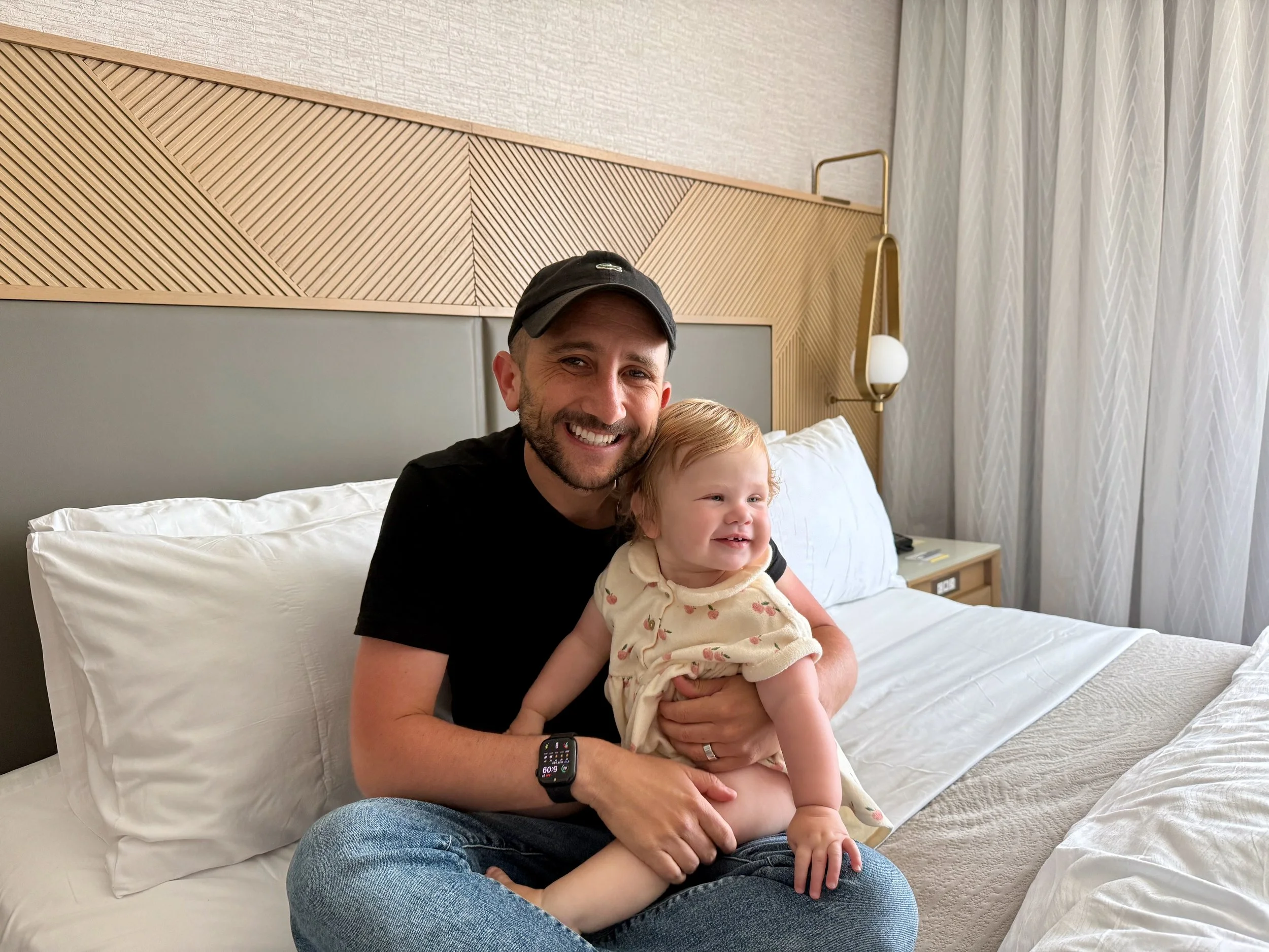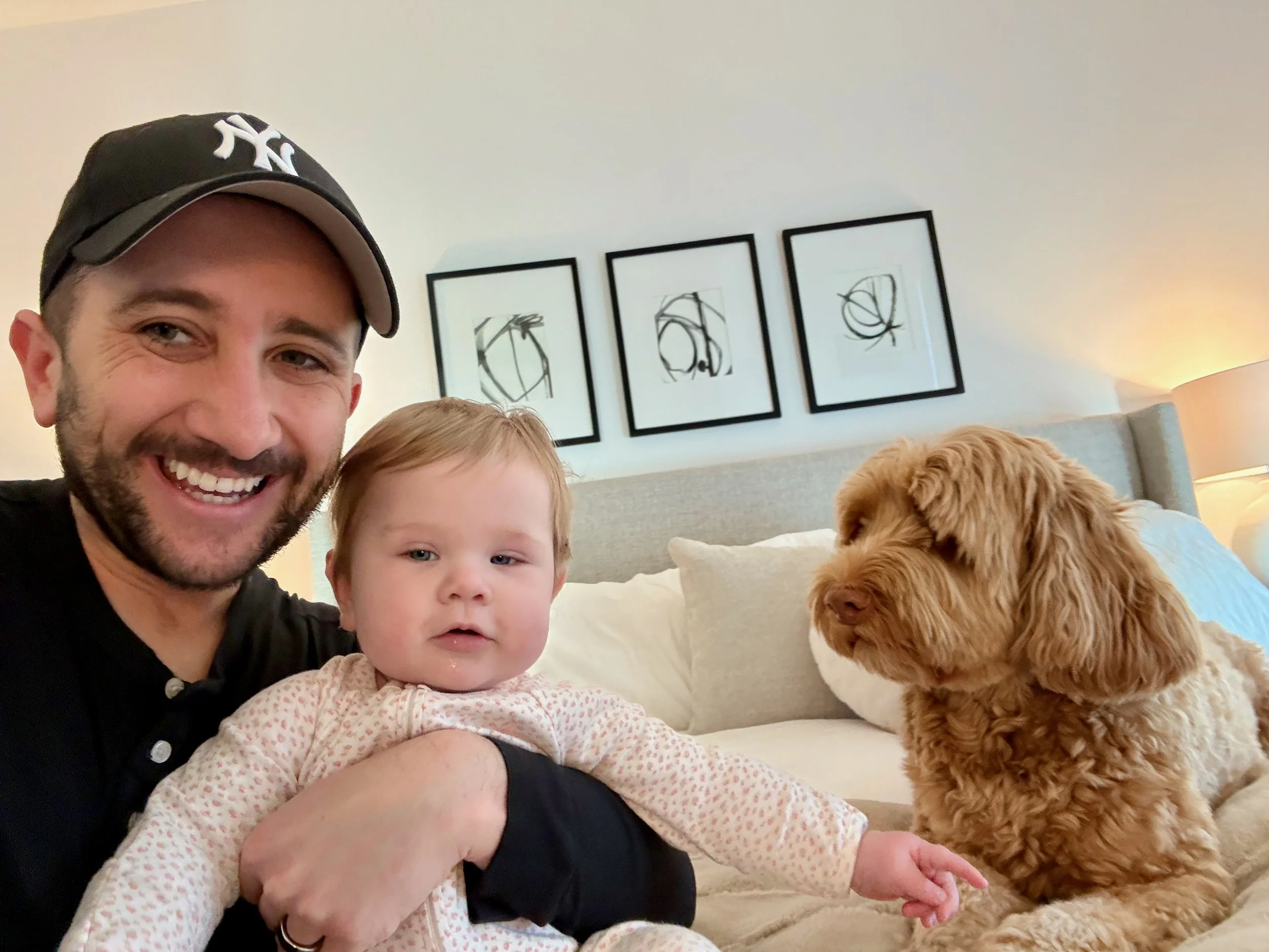 On April 7, Joel finally arrived at our new home with Frasier. I remember seeing him and feeling an overwhelming sense of relief and gratitude. Frasier was so happy, running around the house, exploring everything, clearly very content. It was the first moment in a long time where I felt a true sense of peace settle in my body. A few days later, we celebrated my dad’s birthday, which felt grounding and comforting. Shortly after that, Joel started taking Elle to swimming lessons (seeing him participate in that made me giggle, especially watching him sing baby songs). At the same time, he was continuing interviews for a PE fund in San Diego, and we were navigating what it would mean if he took it, or if he didn’t. For context, Joel had garden leave from Citadel, which meant he technically had until May of 2026 before he was no longer a salaried employee. We talked a lot about what this season could look like for him. In my view, he was walking away from a high-stress, high-demand role, and I genuinely felt he needed time to heal and recover. We debated whether this was the moment for him to do so and spend real time with Elle. It wasn’t an easy conversation, but it was an important one. Ultimately, we decided life was too short, and he decided to stay home with Elle.