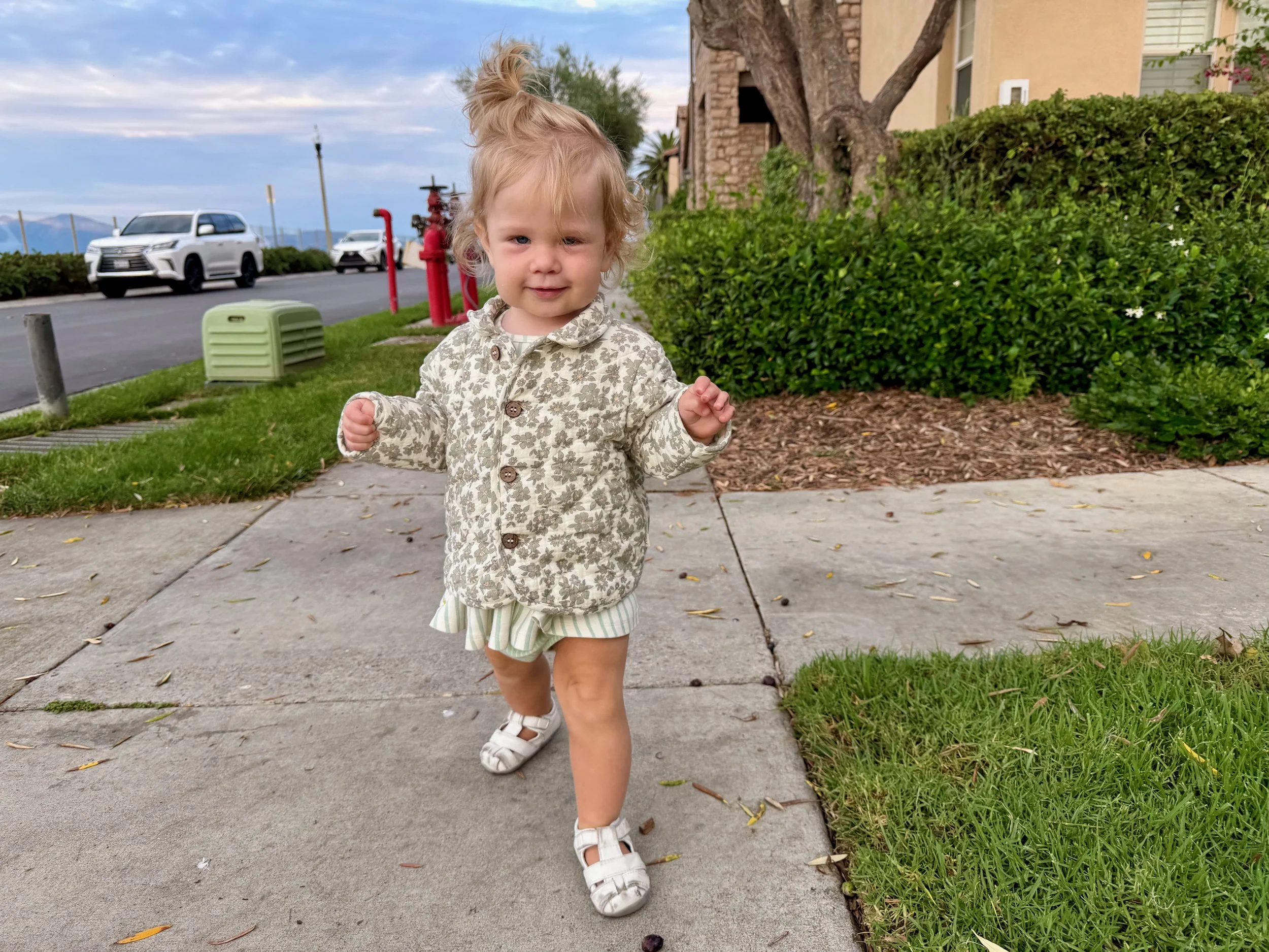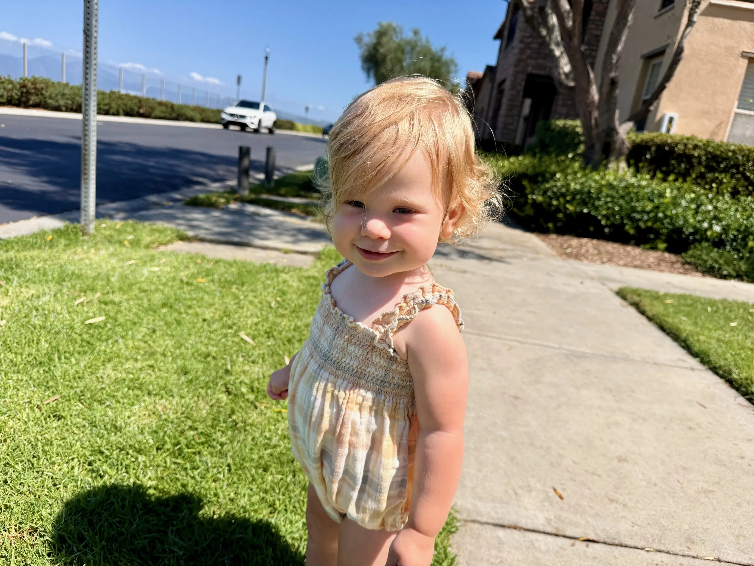 August brought more milestones. Elle said “happy” for the first time. She started giving intentional kisses on the cheek and blowing kisses. Those moments melted me completely. During that month we also went to Menifee so she could spend time with her great-grandma and cousins. A few days later, I went out to celebrate Holly’s birthday, which was such a fun night and a needed release. And around the end of the month, Elle started standing on her own without holding onto us. She would just stand there, steady and confident, as if she knew exactly what she was doing. It felt like a quiet rehearsal for what was coming. But then, on an unassuming day, August 28, Elle took her first steps. Jake was there. Joel was holding her and then gently let go. I was sitting a short distance away, calmly encouraging her. She took two steps toward me. Her face lit up. You could see the pride wash over her in real time. I was so proud I could barely breathe. I watch that video over and over and over again, to this day. I remember as I grabbed her, I gave her the biggest hug, beaming, and kept telling her how proud I was of her. It was one of the most beautiful moments of my life.
