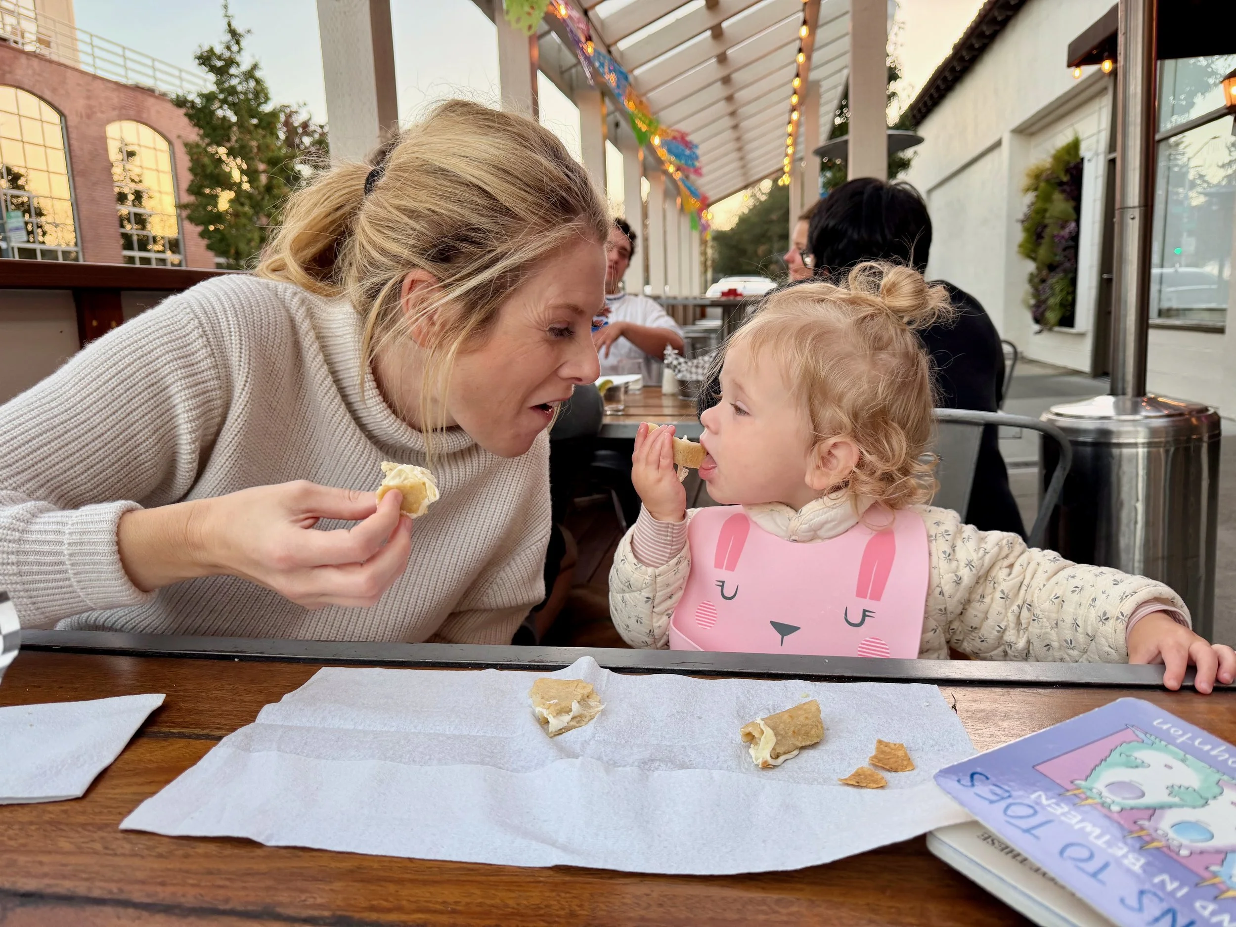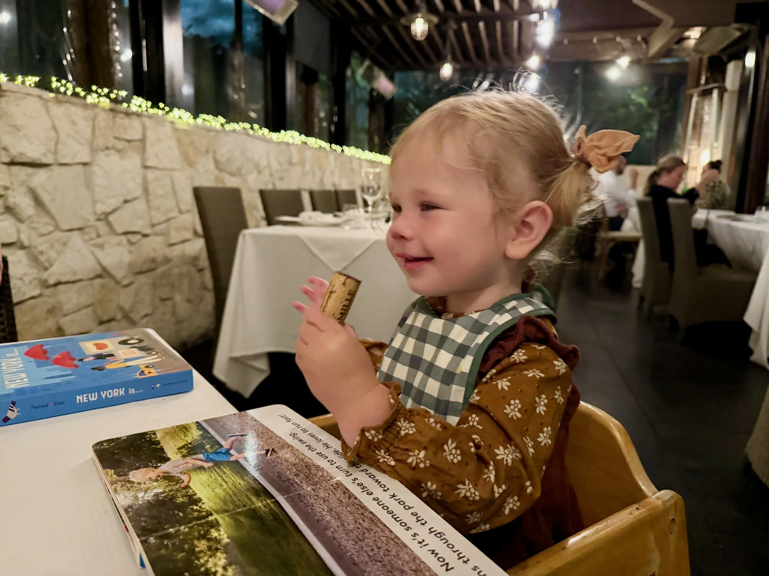 Then came the close of the year, and let me tell you, New Year’s Eve was the best we’ve had yet. Joel surprised me with hot cocoa when I woke up. In the morning, we walked to the park as a family. Throughout the afternoon we rested and played – and just had genuine fun time together. Later that afternoon Jake came over and we all went to Marché Moderne for an early dinner. That dinner ended up being two and a half hours long, and a multi-course meal. And as a final gift from God, Elle was an absolute angel throughout the dinner, coloring, reading, eating as content as could be. At one point, we laughed because we forgot she was even there. After a delicious dinner, we all came home, Joel and I put Elle down for bed and wished her happy new year, and we watched When Harry Met Sally, a tradition we had started the year prior. At 10pm, a bit exhausted, but full of joy, we shut our eyes and said goodbye and goodnight to 2025.