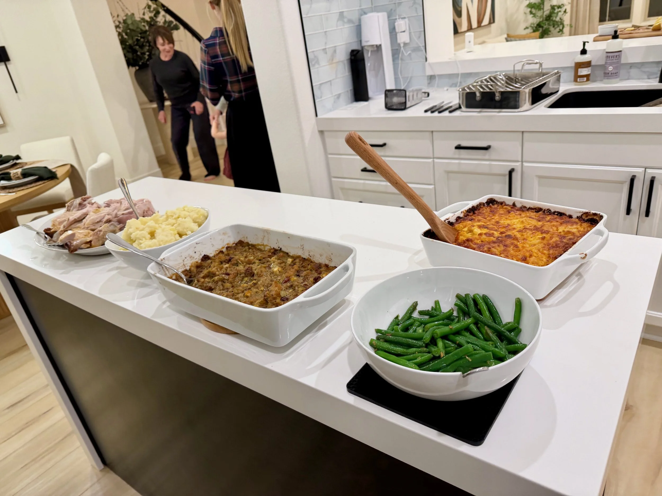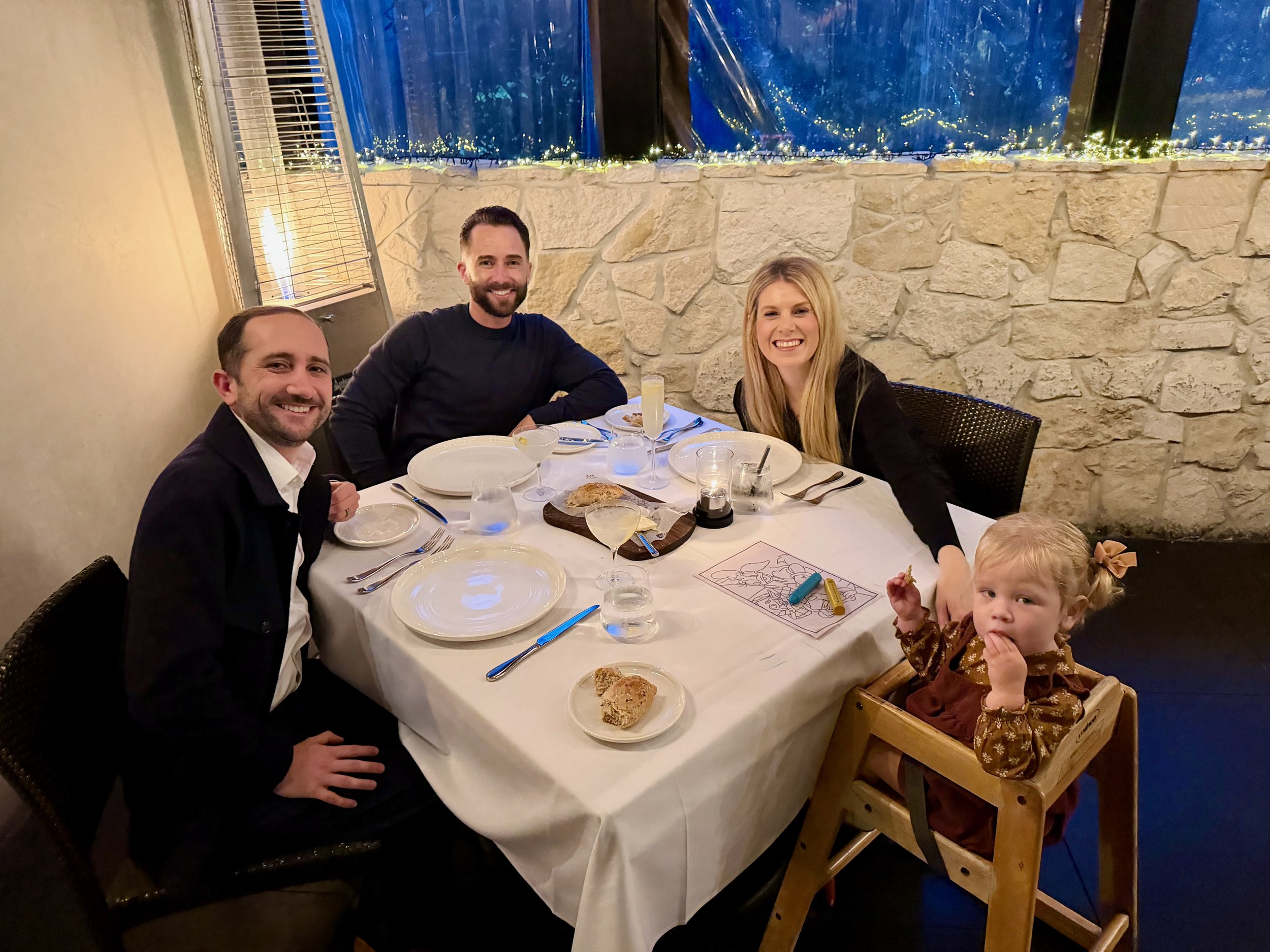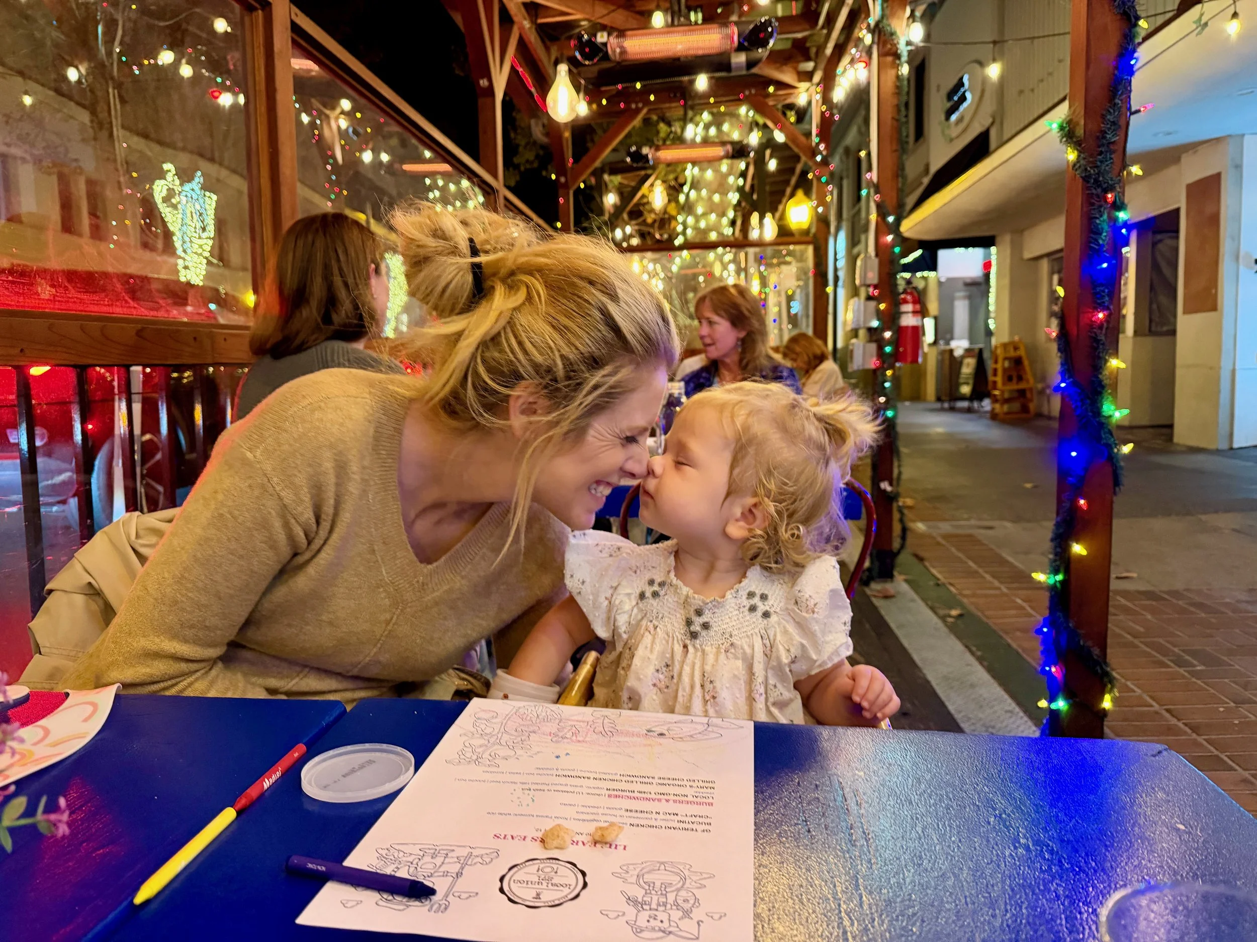 Oh! And I forgot to mention, before Joel started work, I started interviewing nannies. I was terrified I wouldn’t be able to find anyone like Tamar, who we had in New York. After talking to a lovely agency, we started the search, and I ended up interviewing a few and narrowed it down to 2 candidates. I was torn between them, one more structured and reserved, and another, Norma, kind and fun. My hesitation with Norma was that she had mostly worked with older kids. But from the first interaction between her and Elle, I could tell she was special. We did a trial and Elle gravitated to her instantly. Norma felt like home. Hiring her was one of the greatest blessings of the year. From the beginning, she treated Elle like her own. She brought her art projects, sand toys, activities. She thought constantly about Elle’s development, intellectually, emotionally, linguistically. Elle adores her. Every morning, she runs to hug her. When Norma leaves, Elle chases after her for a hug and kiss. It’s beautiful and so reassuring to watch as a Mom. Around that time, Elle also started saying “love you” at bedtime. Hearing that come from her, unsolicited, genuine, felt like my heart might burst. And honestly? It still does. November also included more time with cousins, more dates, and seeing Shucked, which surprised and delighted us both. We saw Moulin Rouge again and confirmed that it’s just… not for us. Still, it was fun to be able to continue to go out on dates together. At the end of the month, we hosted Thanksgiving at our place with Dad and Joan. Joel outdid himself, coursed meal, turkey, sides, dessert, wine, charcuterie. It was delicious, and the house felt warm and beautiful and like home. The day after Thanksgiving, we embarked on our annual family tradition that we have done for 17 years now, we decorated our home for Christmas – and it was perfect.