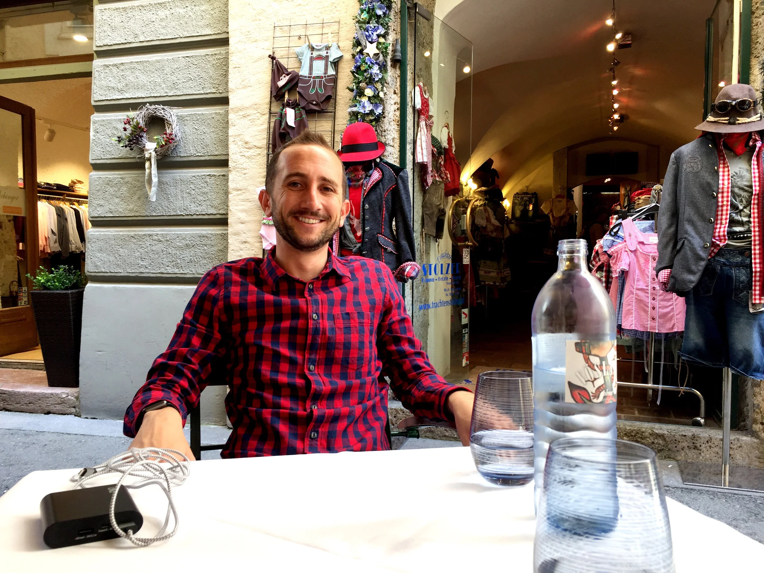 From there it was already after 1PM and we hadn't ate anything. We stopped for lunch at Jenn's recommendation, Gasthof Goldgasse. It was a beautiful small cafe on a very quaint small street with small shops and homes above us. We got a table on the cobblestone street that allowed us to people watch during our meal. Jenn had the Classic Boiled Austrian Beef which came with potatoes and carrots. This was a Jenn meal if I ever saw it, meat and potatoes. I went with the wiener schnitzel. I'm a giant fan of wiener schnitzel and know this is probably the last chance I'll get on this trip to get it and am glad once again to have gotten it. It wasn't as good as the one I got at our hotel in Vienna but it was still really great. We had a lovely hour and a half meal here before going back out and exploring more of Salzburg.