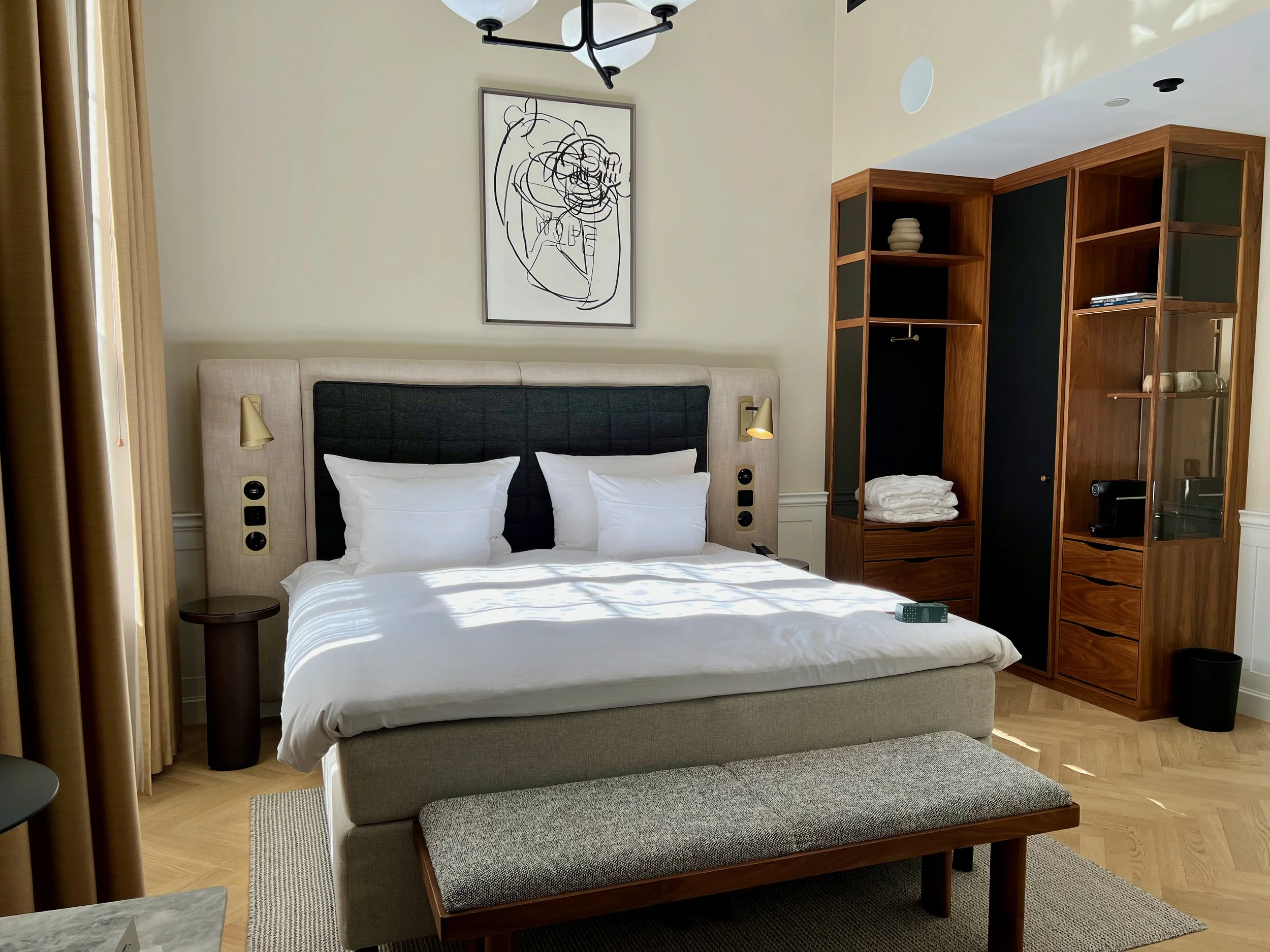 We made our way through customs again quite quickly, grabbed our bags (the first few off), and grabbed a Taxi to our hotel for the next three nights, Villa Copenhagen. We were very fortunate that they had our room ready for us when we arrived and given our AMEX booking they upgraded us to a superior room. The design at this hotel is stunning, Jenn took several “inspirational” photos for future home designs and our room feels more like an apartment than a hotel room. We love it. After taking a room tour and doing some light unpacking we were off.