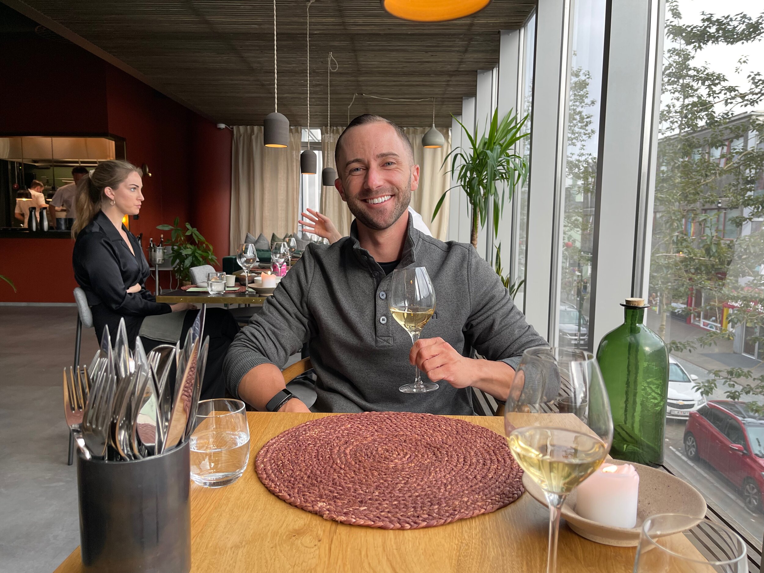 A little before 6 PM we left our hotel and made our way to the only Michelin star restaurant in Iceland, Dill. This is a restaurant that Jake actually heard about in a documentary on Netflix and so we made sure to get reservations. When we arrived we got a nice window spot and for the next two hours, we enjoyed a beautiful fifteen-course meal.